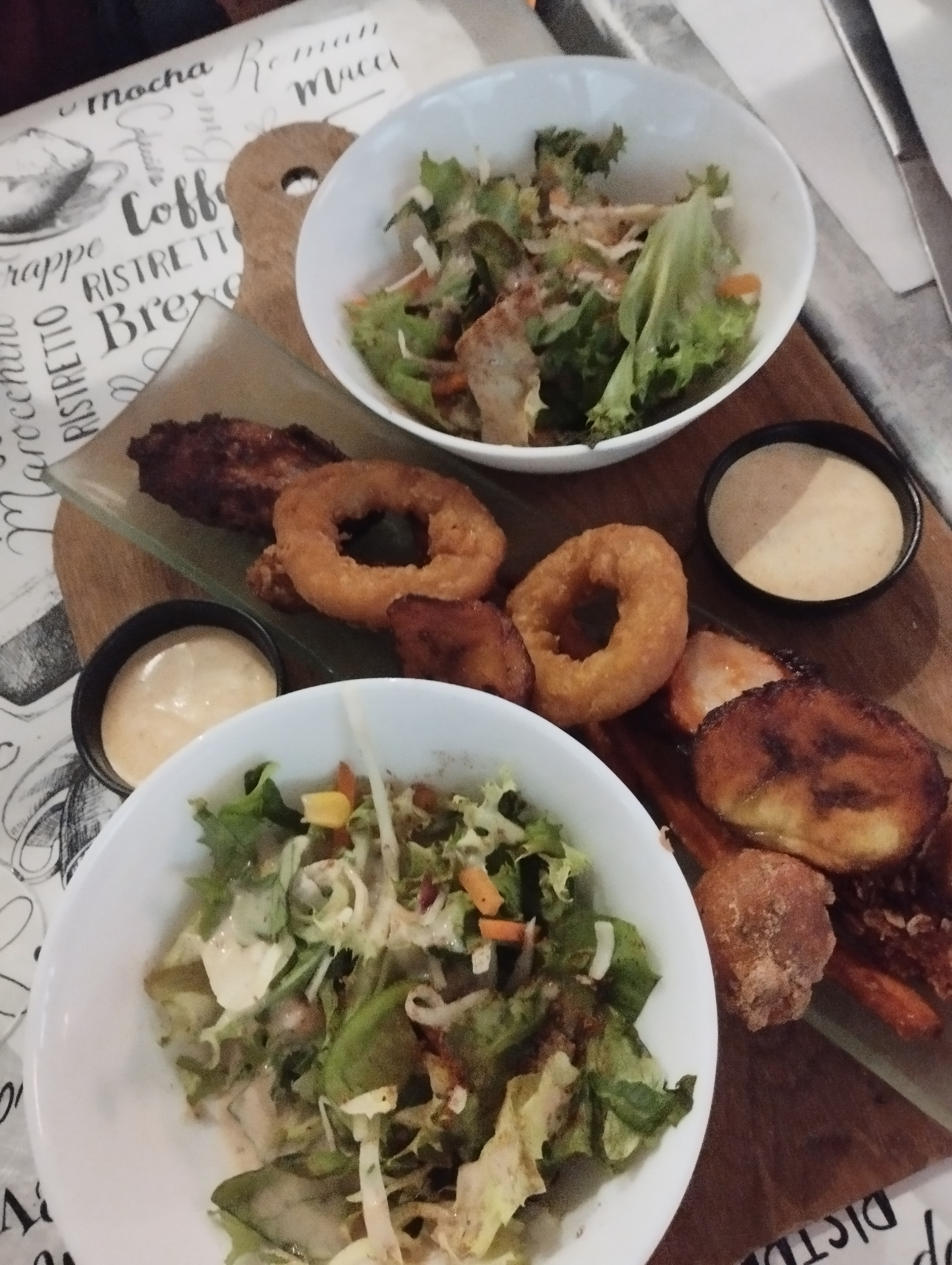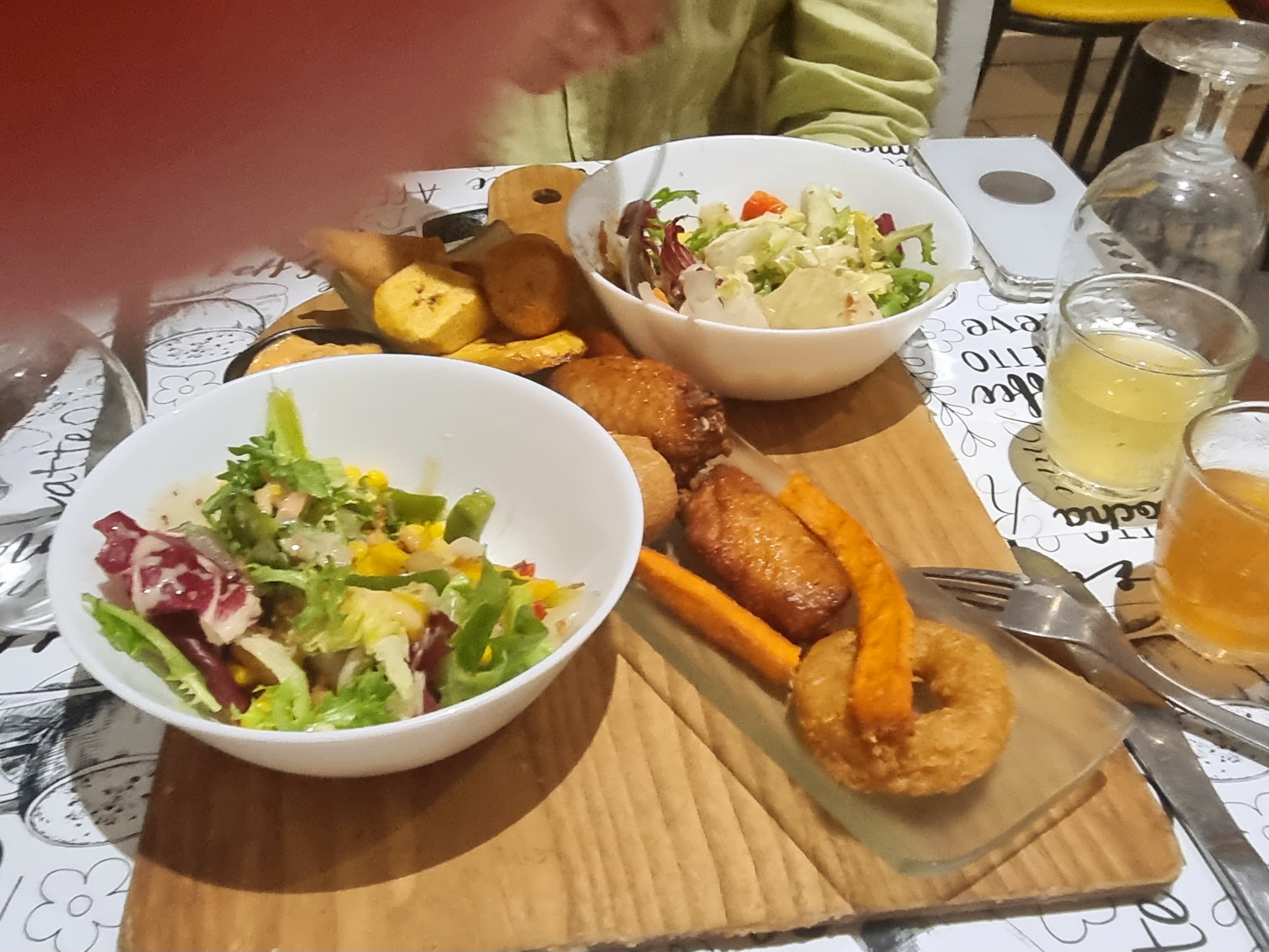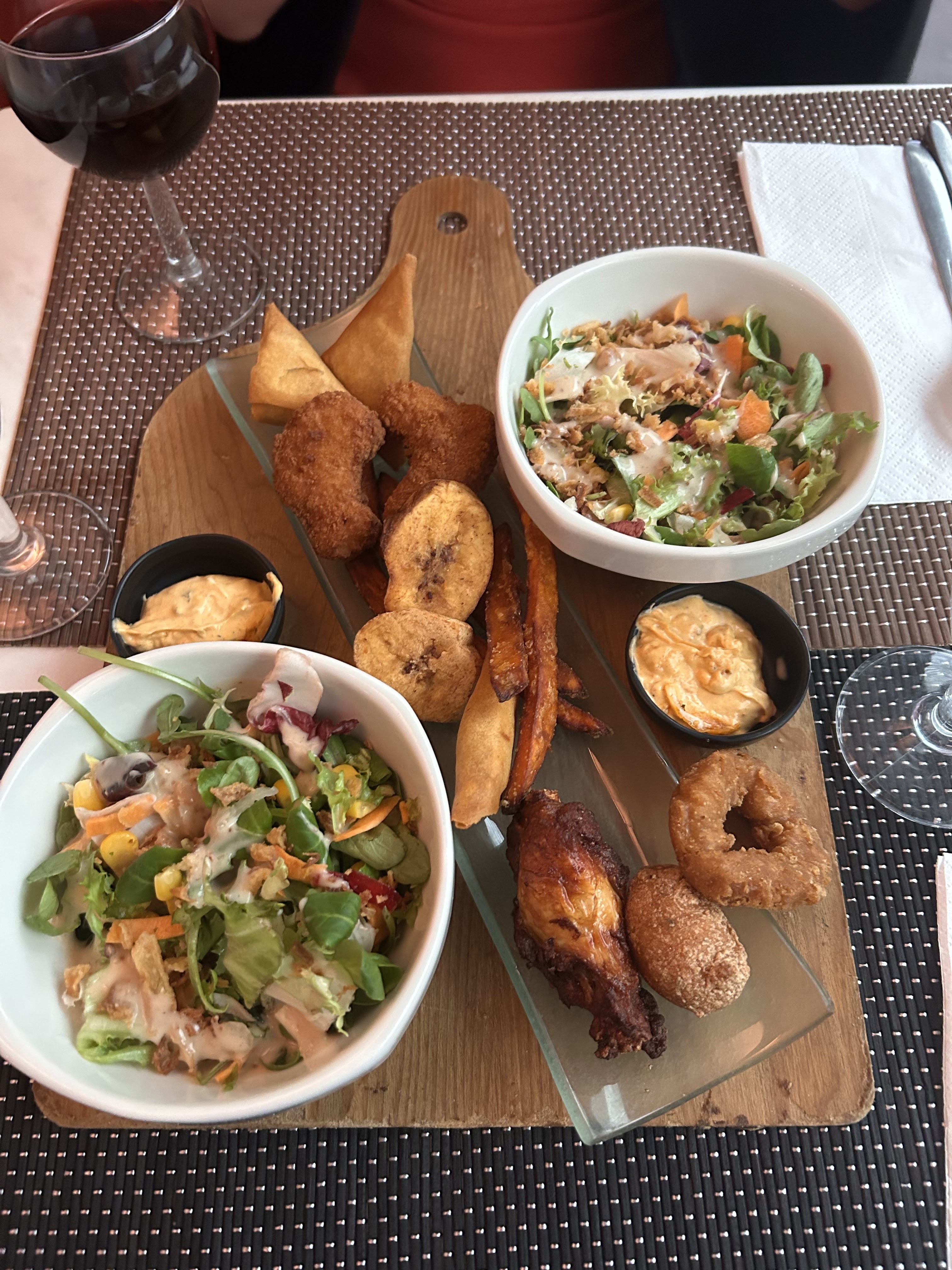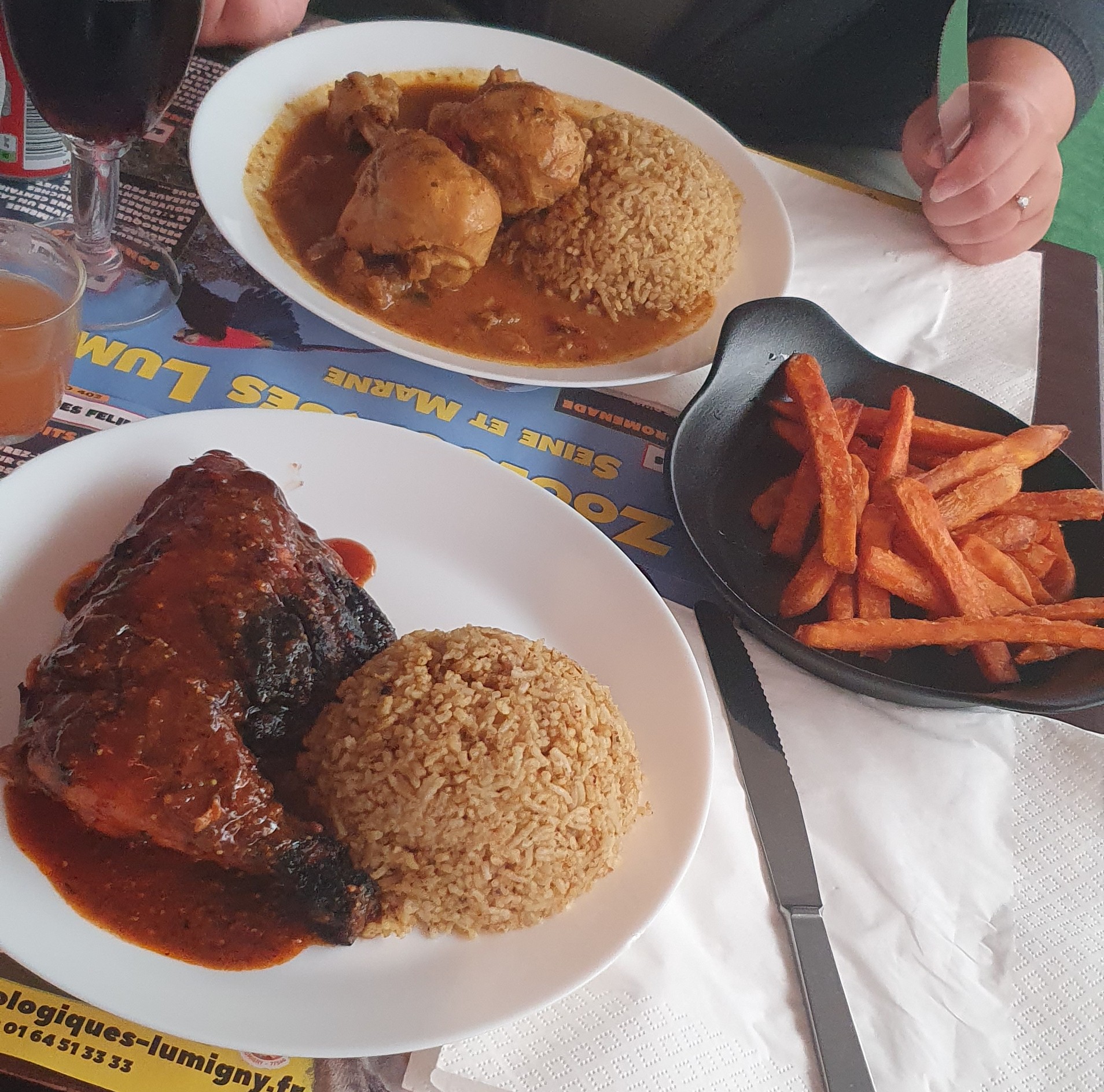 Les plats étaient plutôt bons, c'est du fait maison. On a bien aimé les entrées (accras, wings, assortiments fritures...). Le poulet et le poisson étaient accompagnés d'une bonne sauce ; j'ai été un poil déçu par le riz. Par contre, service très bof et surtout très lent... après 1h d'attente après avoir commandé nos desserts, ils n'étaient toujours pas lancés, on a préféré partir...