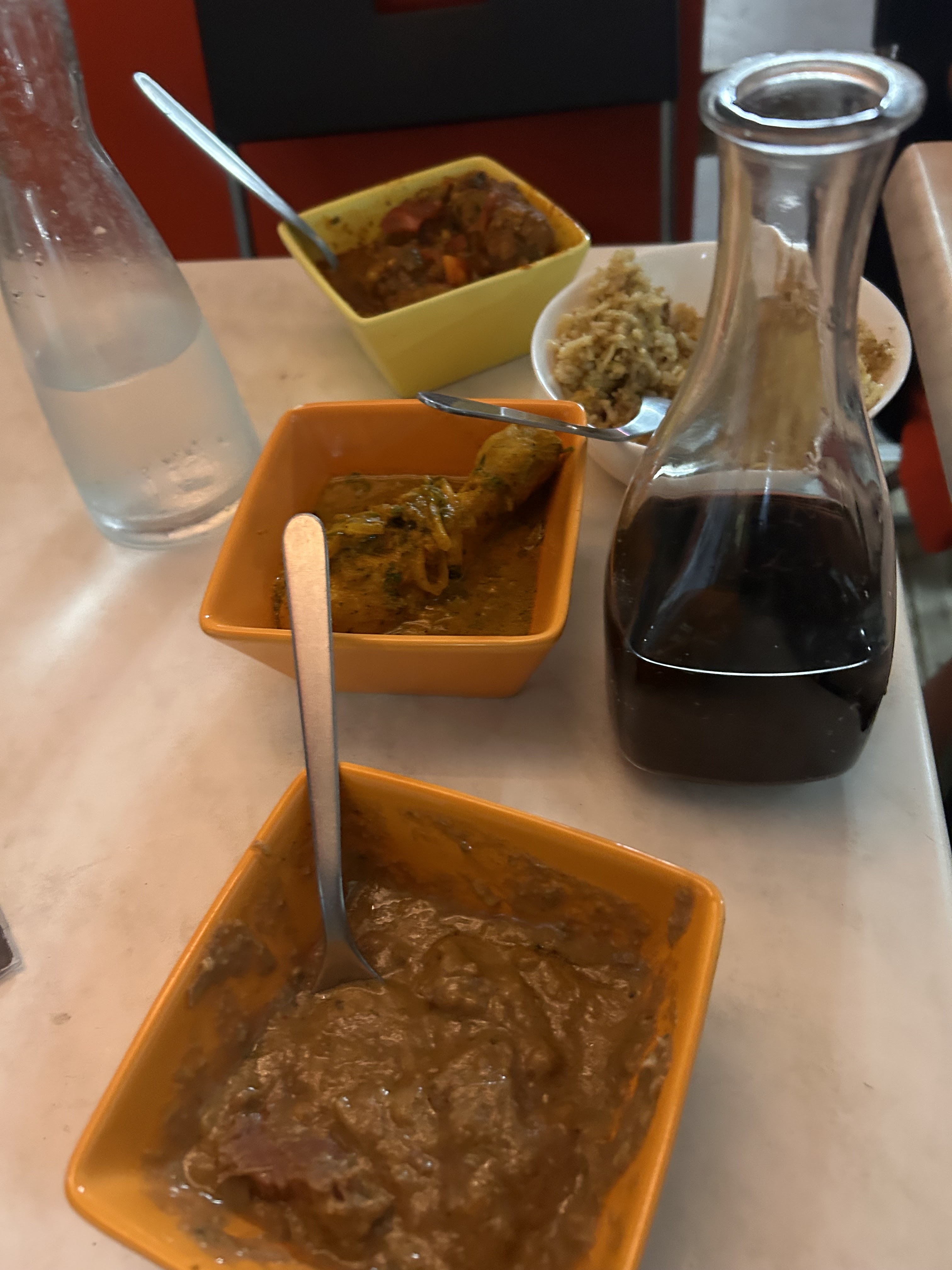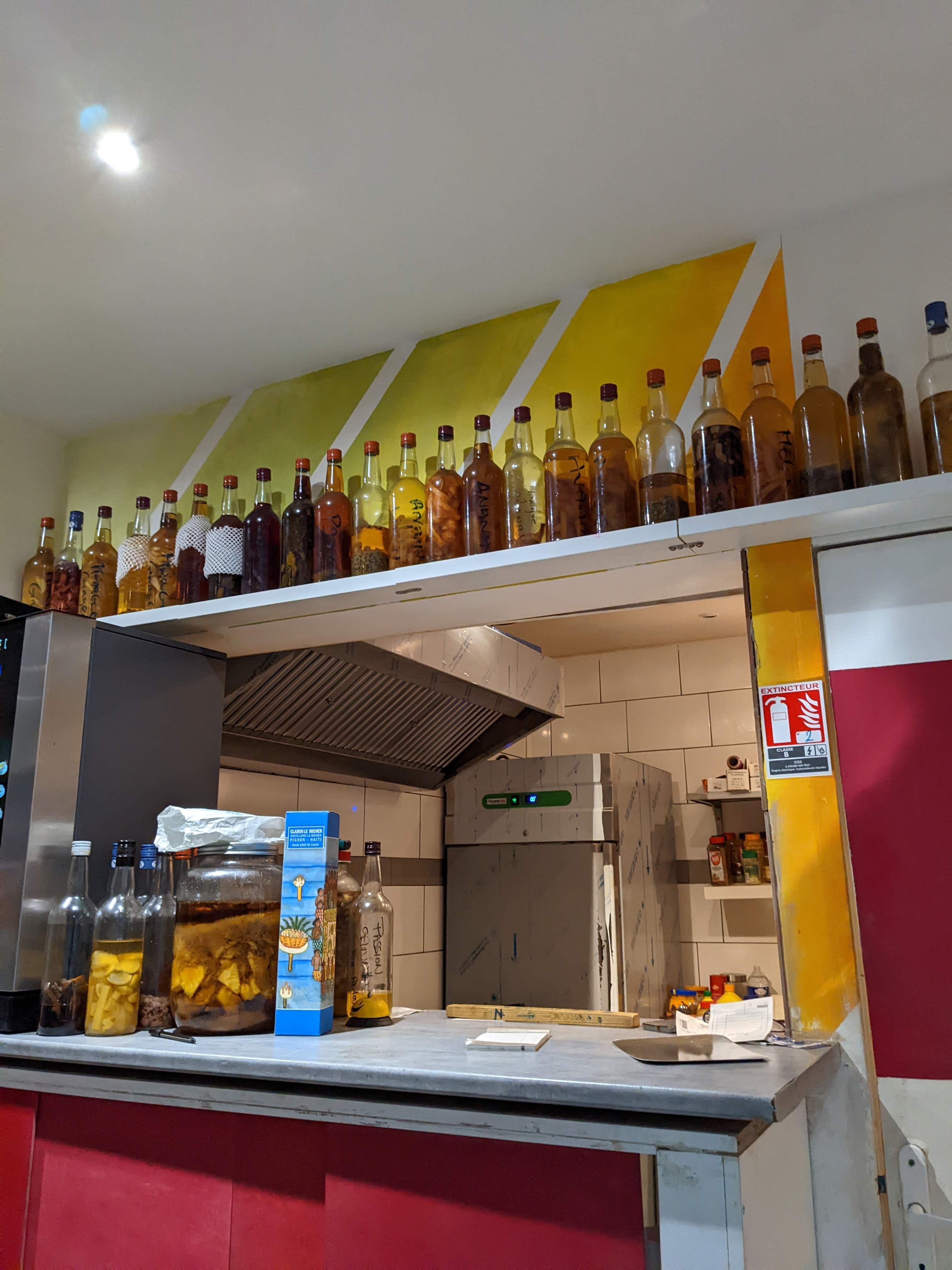 Update suite deuxième passage dans ce restaurant. Intoxication qui s'est manifestée 15h après y avoir mangé. Nous étions 3, nous avons été 2 à être malade. Je ne pense pas à une coïncidence malheureusement... :( Je laisse 2 étoiles pour le bénéfice du doute et pour le rhum arrangé ! L'emplacement n'est pas hyper accueillant. La devanture n'est pas fofolle mais il ne faut pas que ça vous arrête. J'y ai mangé ce midi. Une très bonne découverte. Simple mais très efficace. Le plat était très parfumé, la cuisson du poulet parfaite. Piquant mais peut-être pas suffisamment, je m'attendais à plus '' costaud '' :). Le rhum arrangé passion gingembre, un régal ! Je vais rapidement y retourner !