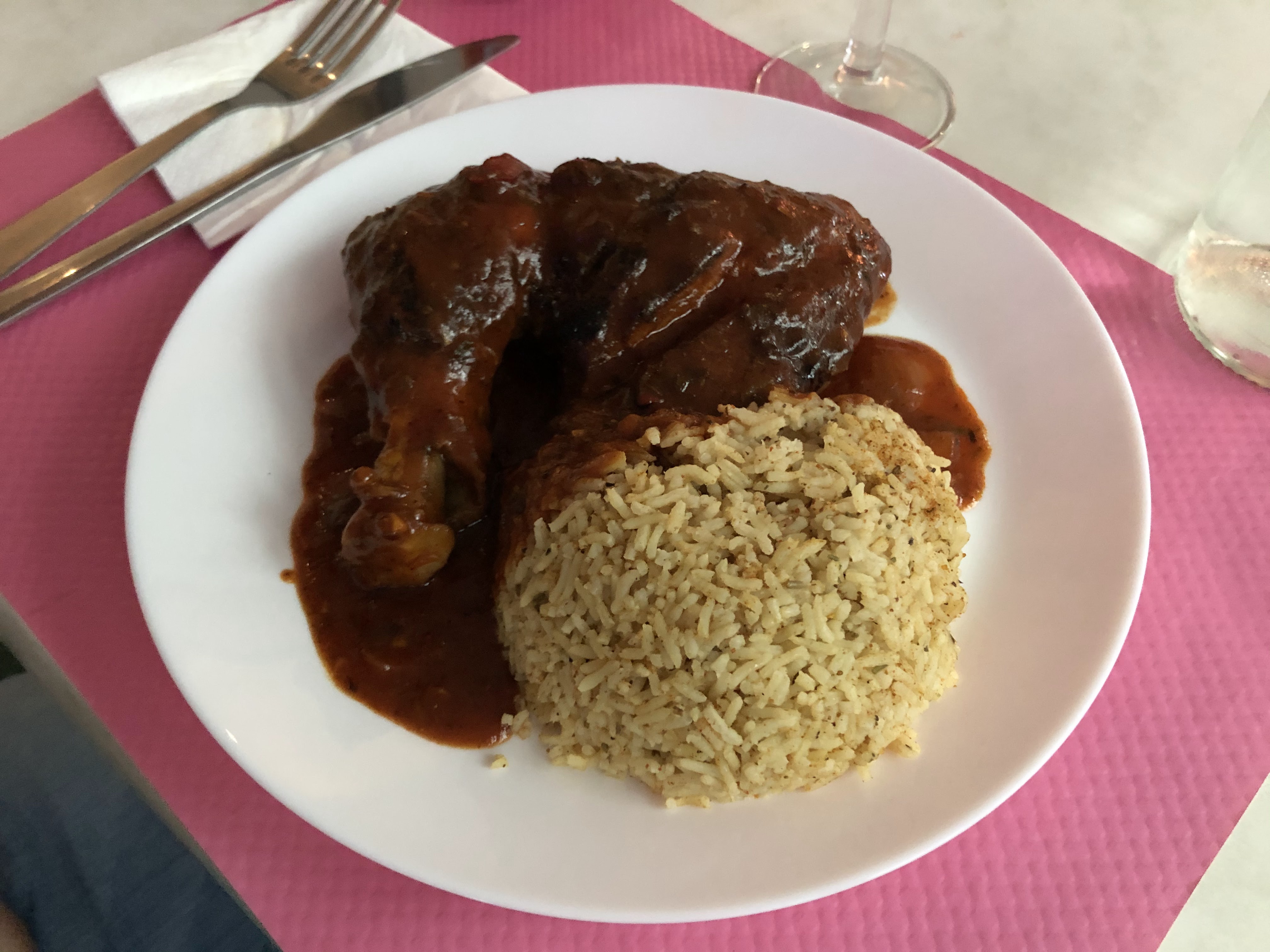 J'ai pris un poulet jamaicain avec du riz à la façon du chef C'était TOP 👌