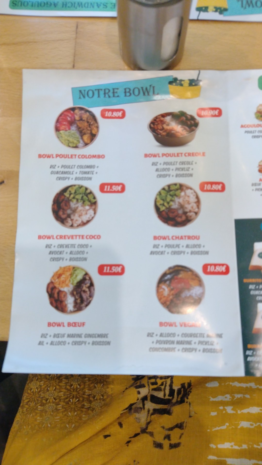 Lieu chaleureux , équipe agréable Les bowls sont copieux , mais manque un peu de saveurs créoles.