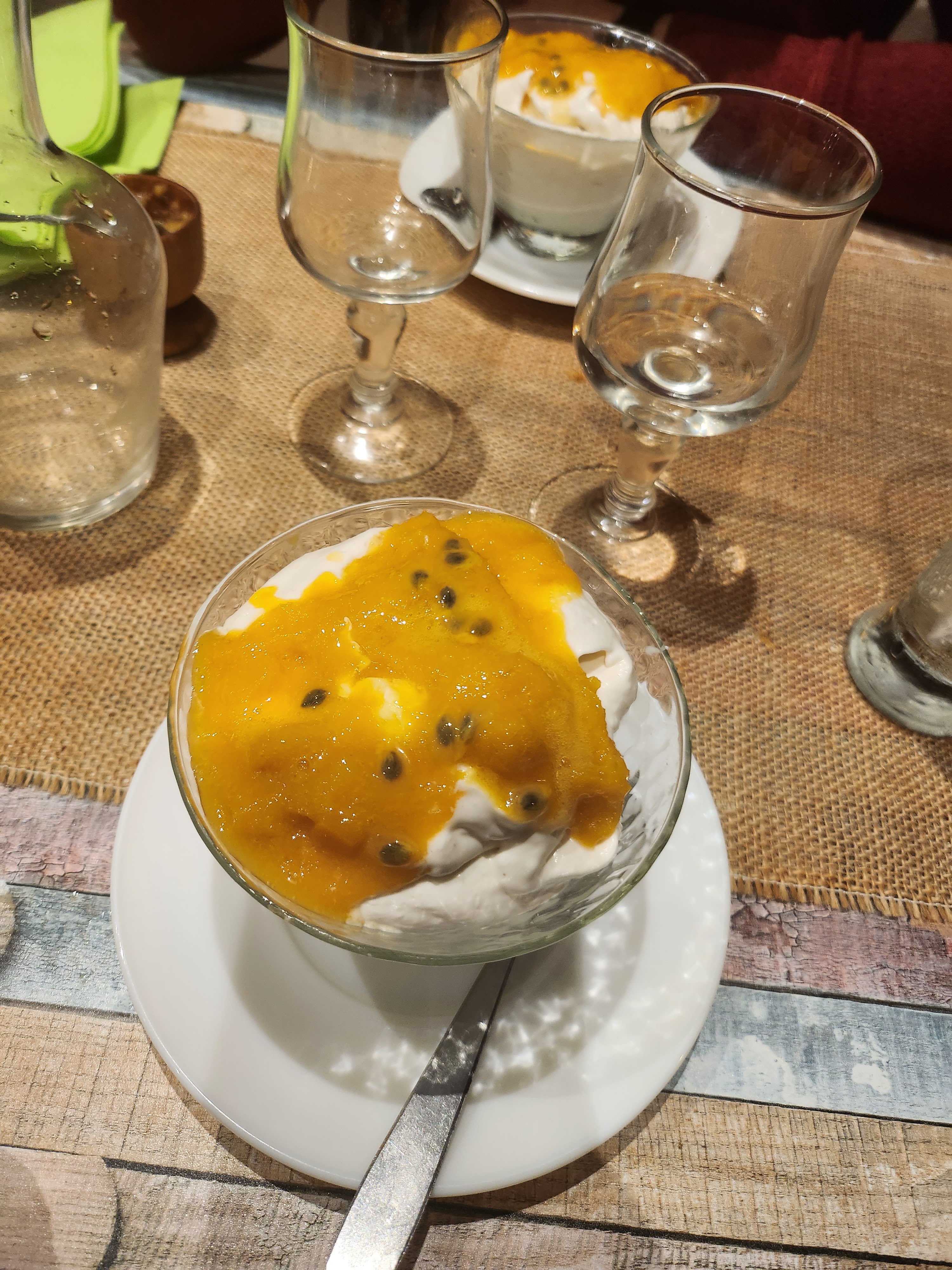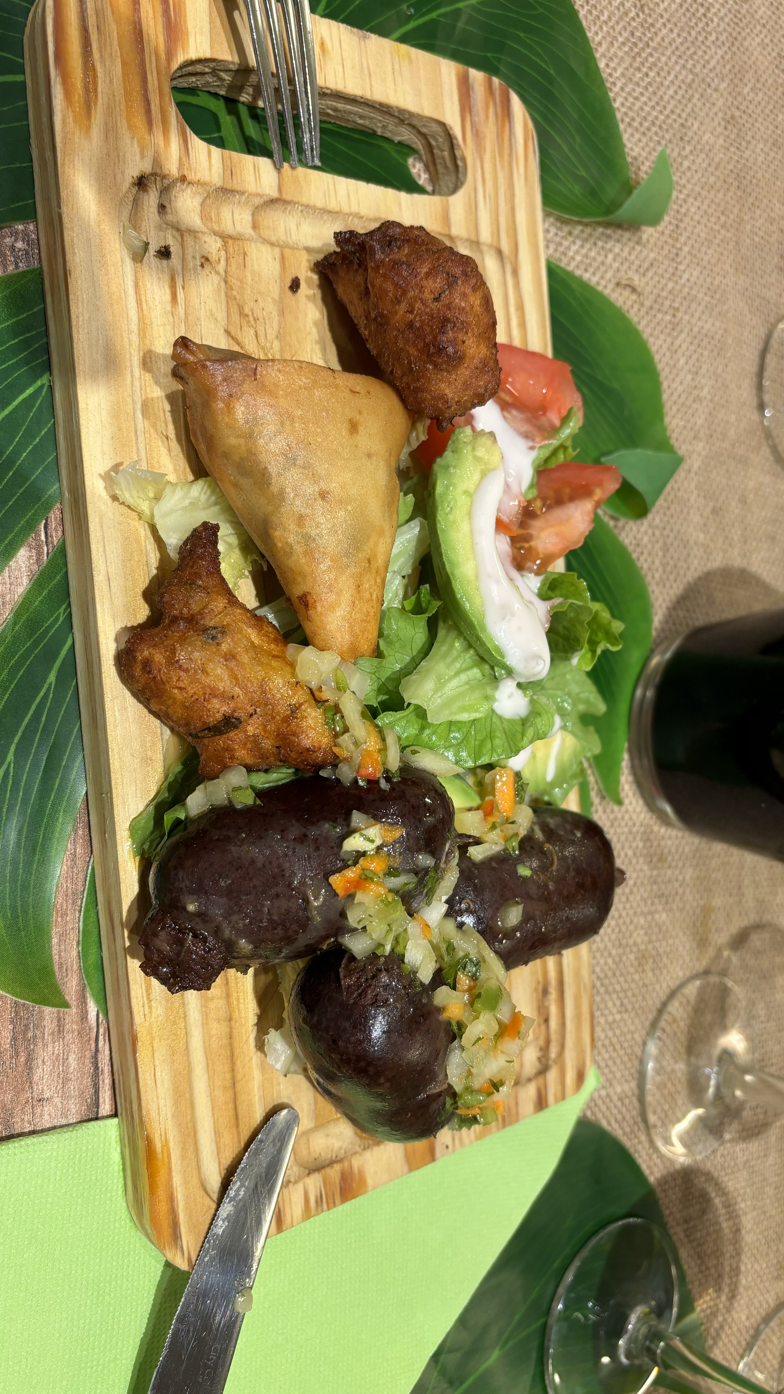 Petite recherche sur internet et nous voilà Od'lices des îles pour la Saint Valentin ! Alors la petite entrée avec boudins, accras et des samoussas juste parfaiiiiit. Et pour le plat j ai pris un rougail saucisses, pour moi plus épicés aurait été le top sinon plat nickel. Et pour finir la présentation de celle qui nous a tous concocté ! Un grand merci Sinon restaurant petit mais c est la ville qui veut. Peut de grand espace pour la restitution