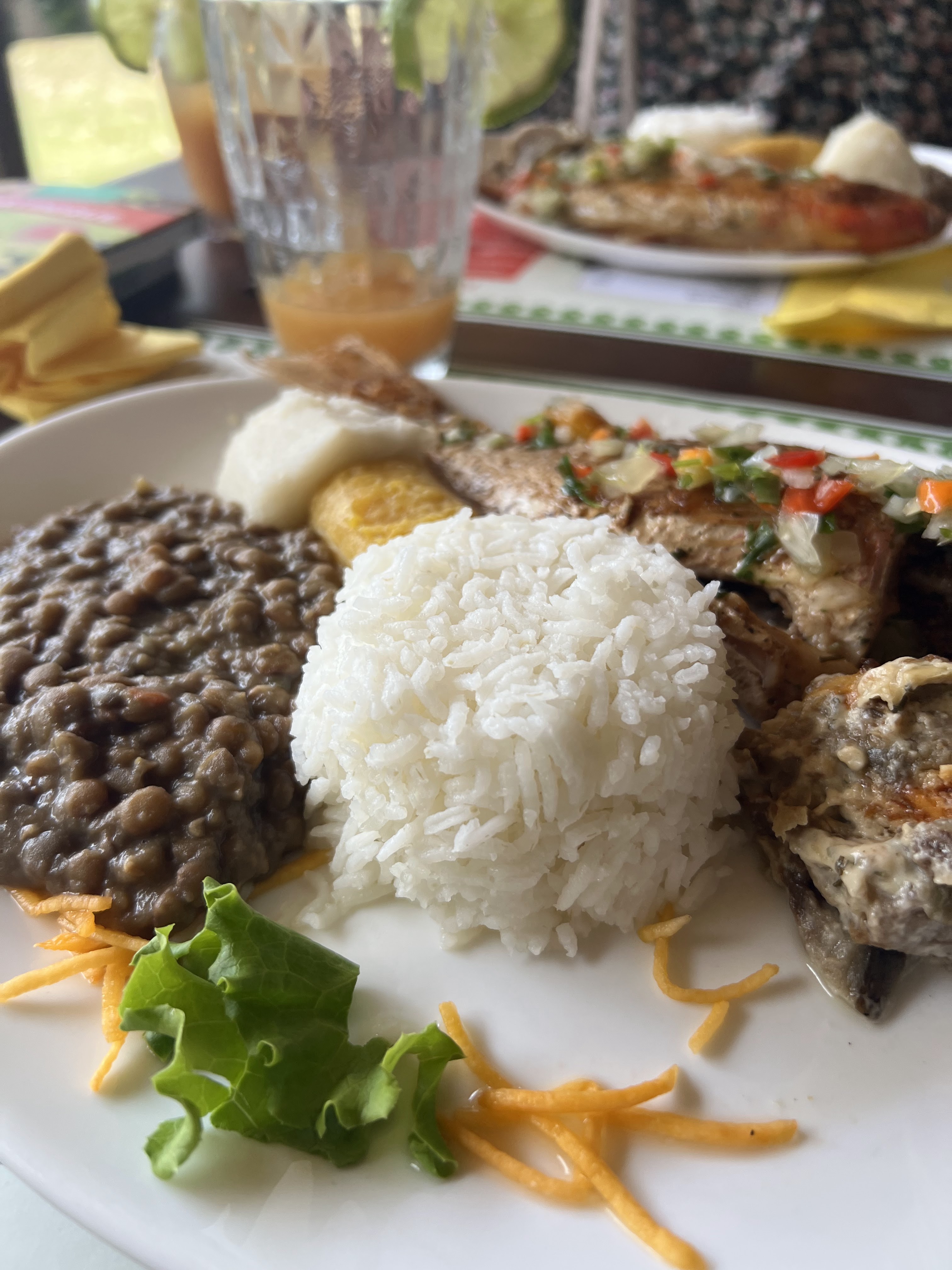 Poisson et accompagnements succulents, cadre merveilleux et pina colada à se rouler par terre Si toutefois vous avez de la place pour le dessert, le blanc manger coco et la pana cotta sauront vous ravir