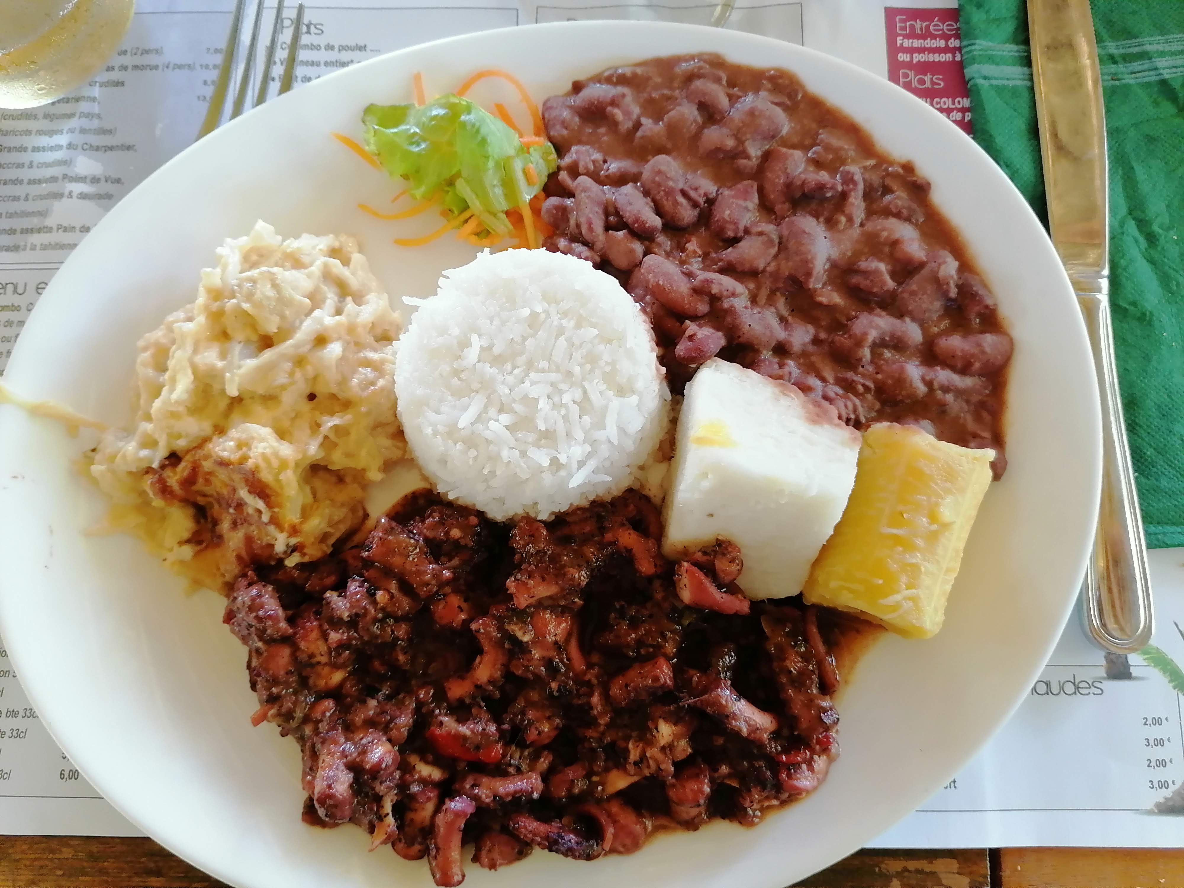 Cuisine traditionnelle antillaise (combo de poisson, de poulet ...). Tres bien.